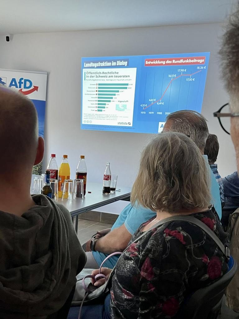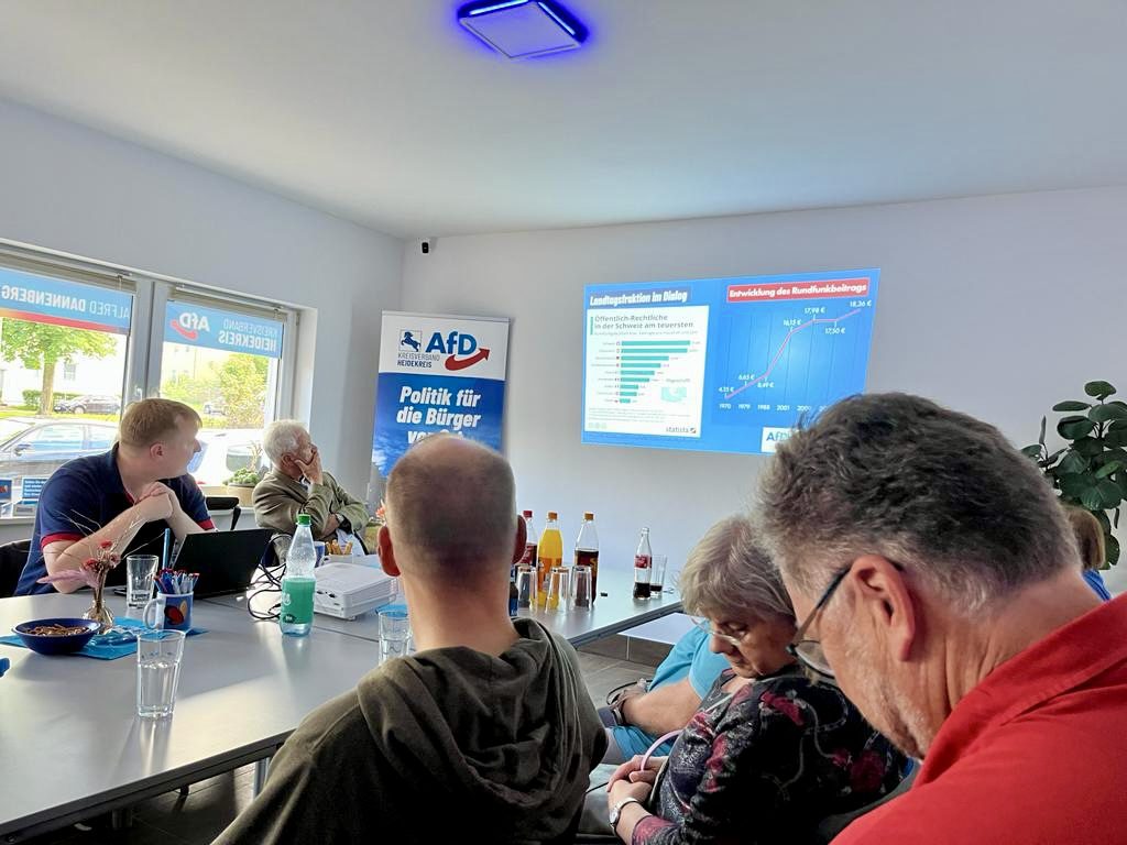 Am 1.8.2023 fand in den Räumen unseres neuen Büros in Walsrode unser Stammtisch für Mitglieder und Interessierte Bürger statt. Nach der Begrüßung durch den Kreisvorsitzenden Carsten Vogel und seinen Stellvertreter Alfred Dannenberg MdL hielt der Landtagsabgeordnete und stellvertretende Fraktionsvorsitzende Jens-Christoph Brockmann einen Vortrag zum Thema: Ist der öffentliche Rundfunk noch zu retten ?!.